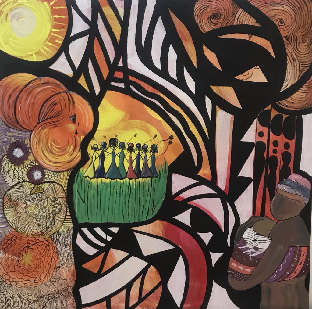 Vingt-cinq (25) toiles dont une collective, disposées suivant une colombe dessinée au sol. Fruit des coups de pinceaux de ces jeunes talents pour cette exposition de sortie de résidence encadrée par Mariam Sougué, responsable de la galerie Kanudya, les toiles véhiculent des messages en lien avec la thématique centrale de la Journée Internationale de la Femme, « Femme artisan de paix, engagée pour un meilleur vivre ensemble au Burkina Faso ». C’est d’ailleurs à cette occasion que la galerie Kanudya a initié le projet « 08 mars – 08 filles – 08 pinceaux » qui a réuni huit amatrices des arts plastiques venues de différentes villes du Burkina Faso.